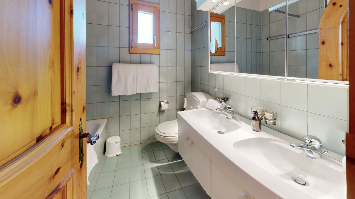 La pièce à vivre et salle à manger ouverte est le cœur du foyer, créant une ambiance chaleureuse et invitante avec un canapé, une table à manger et une télévision. Une connexion Wi-Fi est disponible. La cuisine pratique est entièrement équipée (y compris lave-vaisselle, grille-pain, machine Nespresso, ensemble Fondue/Raclette). Il y a deux salles de bains (une avec baignoire), toutes deux avec un approvisionnement de base en savon et serviettes.