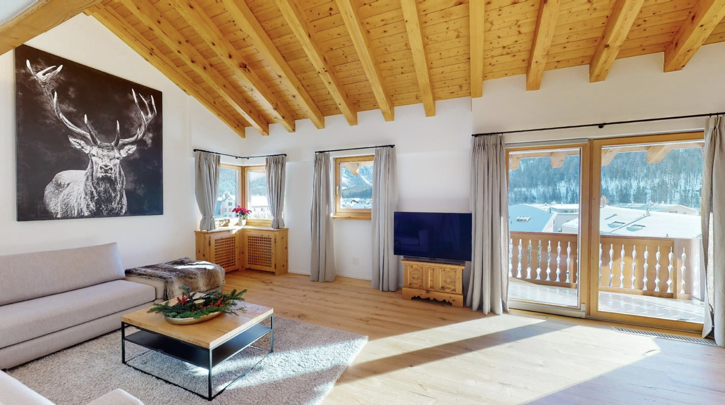 Проведите незабываемый отпуск в недавно отремонтированных апартаментах, сочетающих современный комфорт и альпийский уют. Расположенная на тихом возвышении на окраине Челерины, эта квартира предлагает захватывающий вид на вершины Муоттас-Мурагль и Пиц-Лангуард.