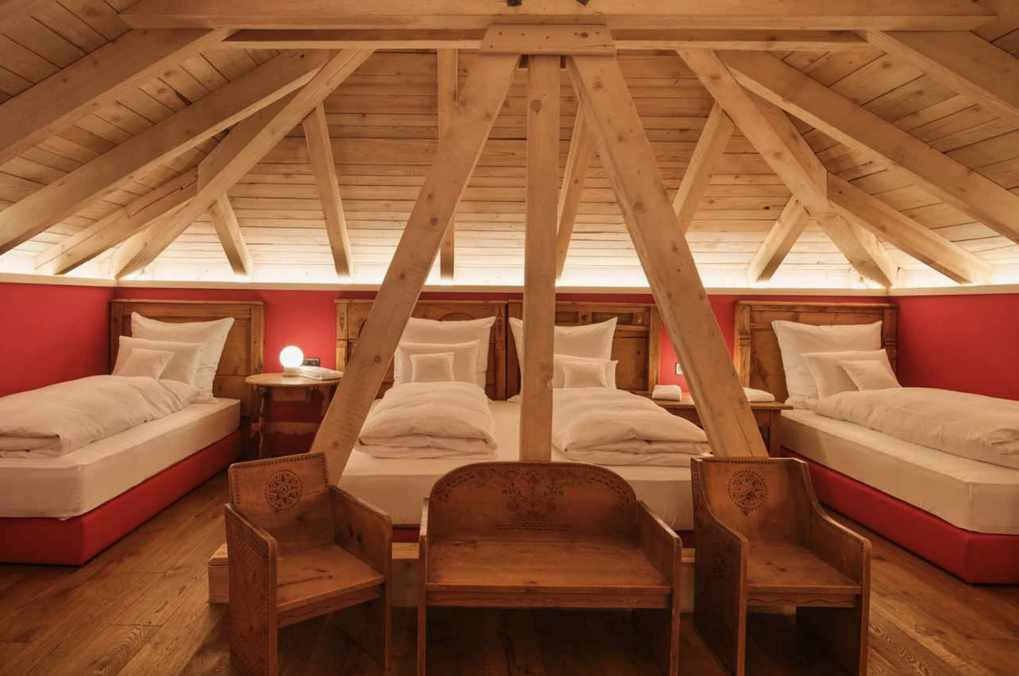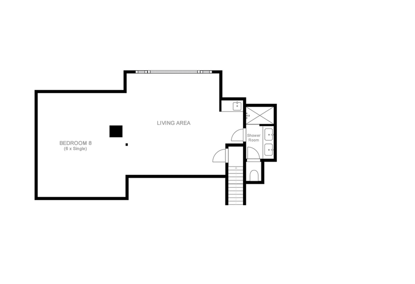 • Верхний Уровень (Под Крышей): Детская комната в стиле общежития с шестью односпальными кроватями, собственной гостиной зоной, кухонным уголком и душевой комнатой en-suite.