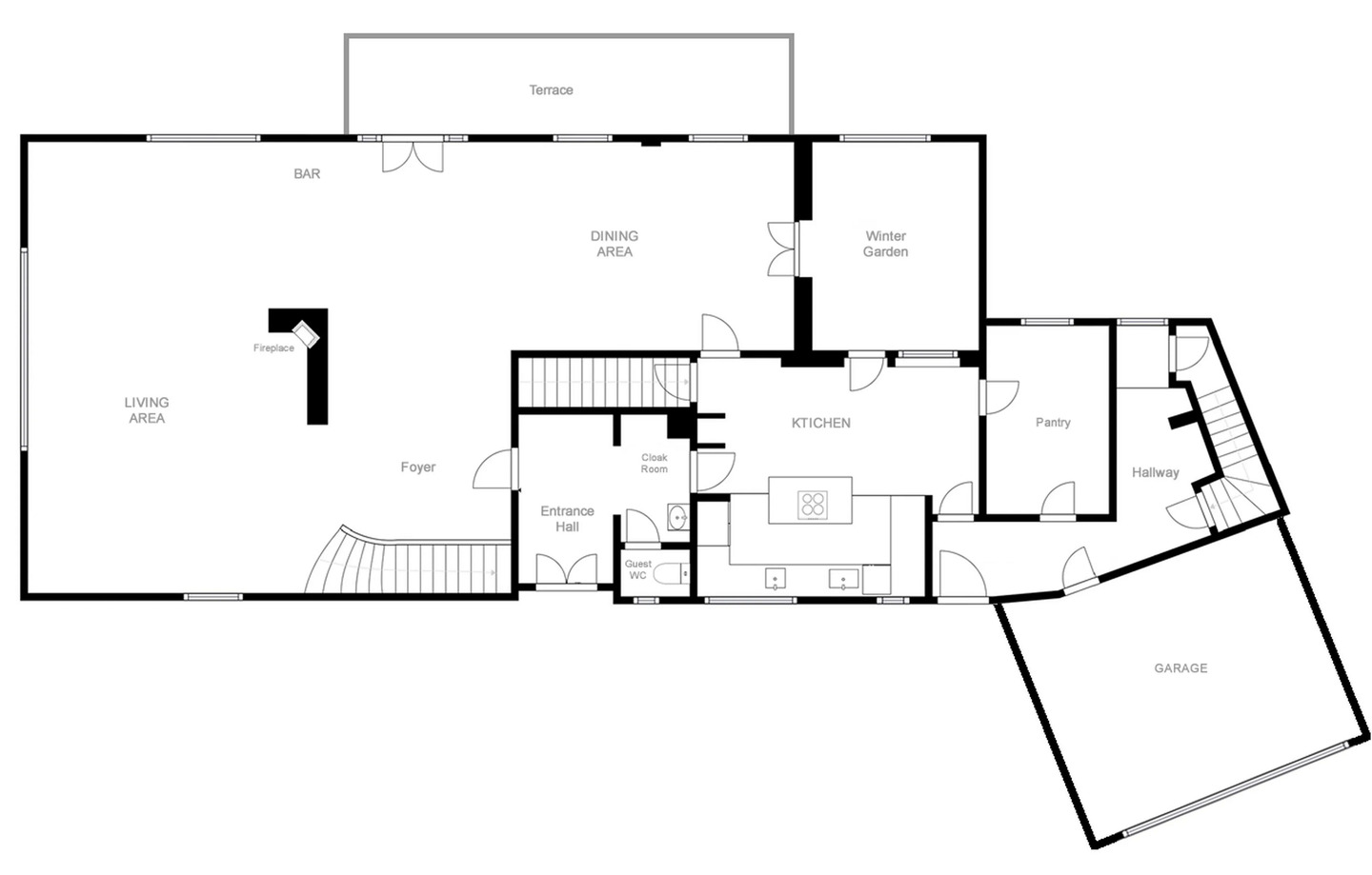 • Главная Гостиная: Наслаждайтесь удобными диванами вокруг центрального камина, обрамленными панорамными видами и украшенными тщательно подобранной коллекцией современного искусства.